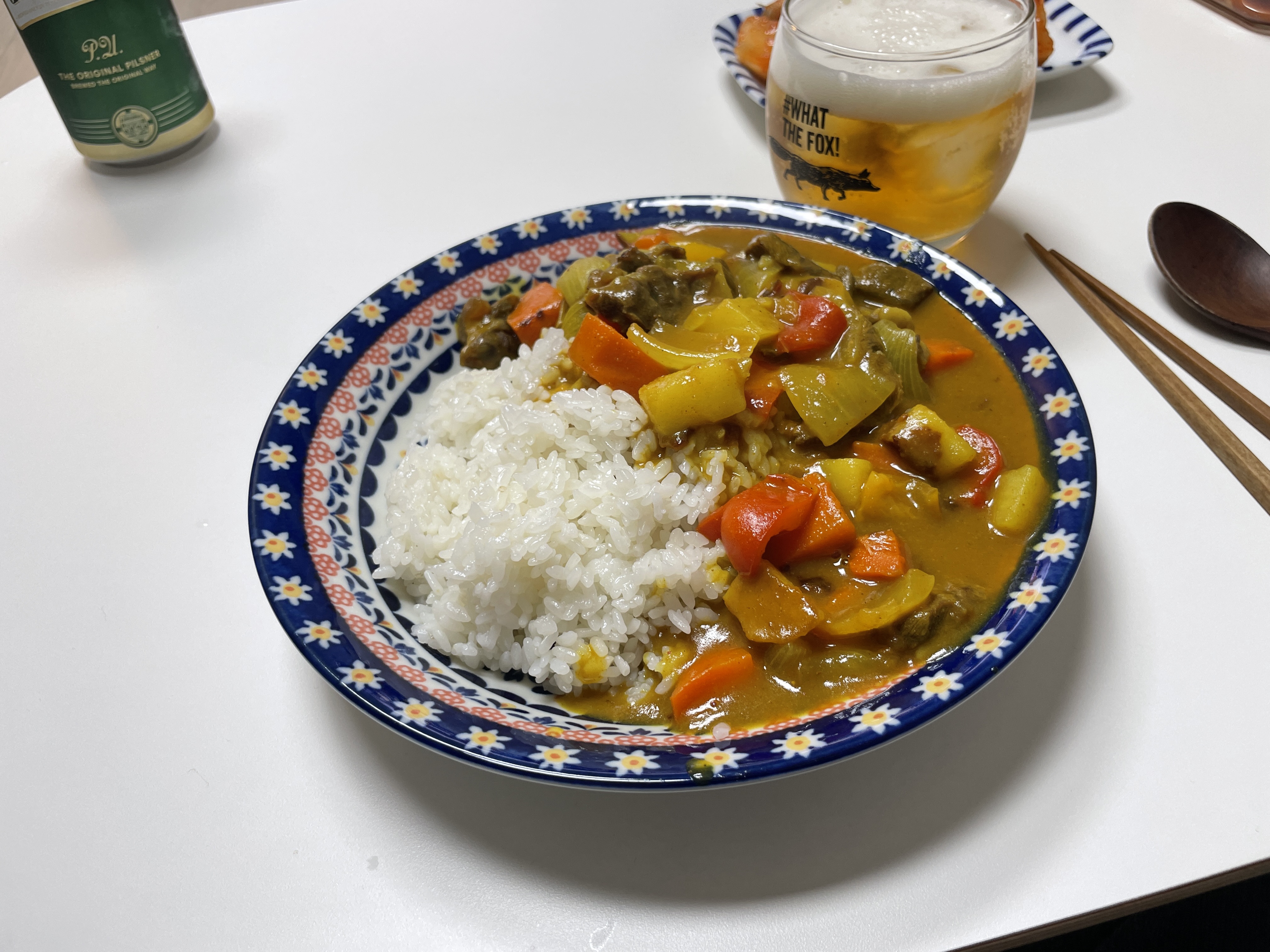 자 카레는 다 끓었고 밥도 다 되었어요.