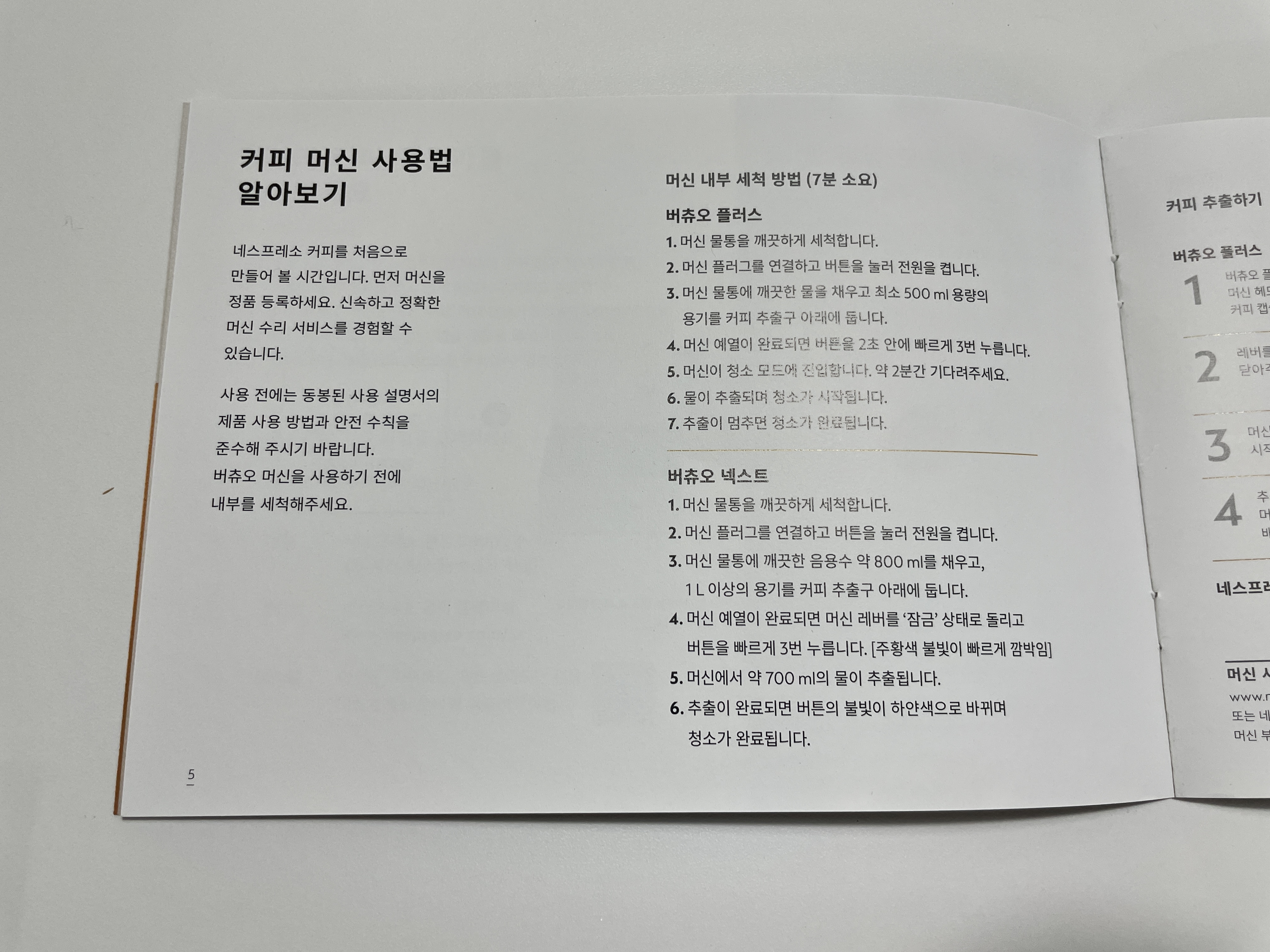 버츄오 플러스 머신이니 설명을 봅니다. 물통부터 세척해서 다시 조립합니다.
