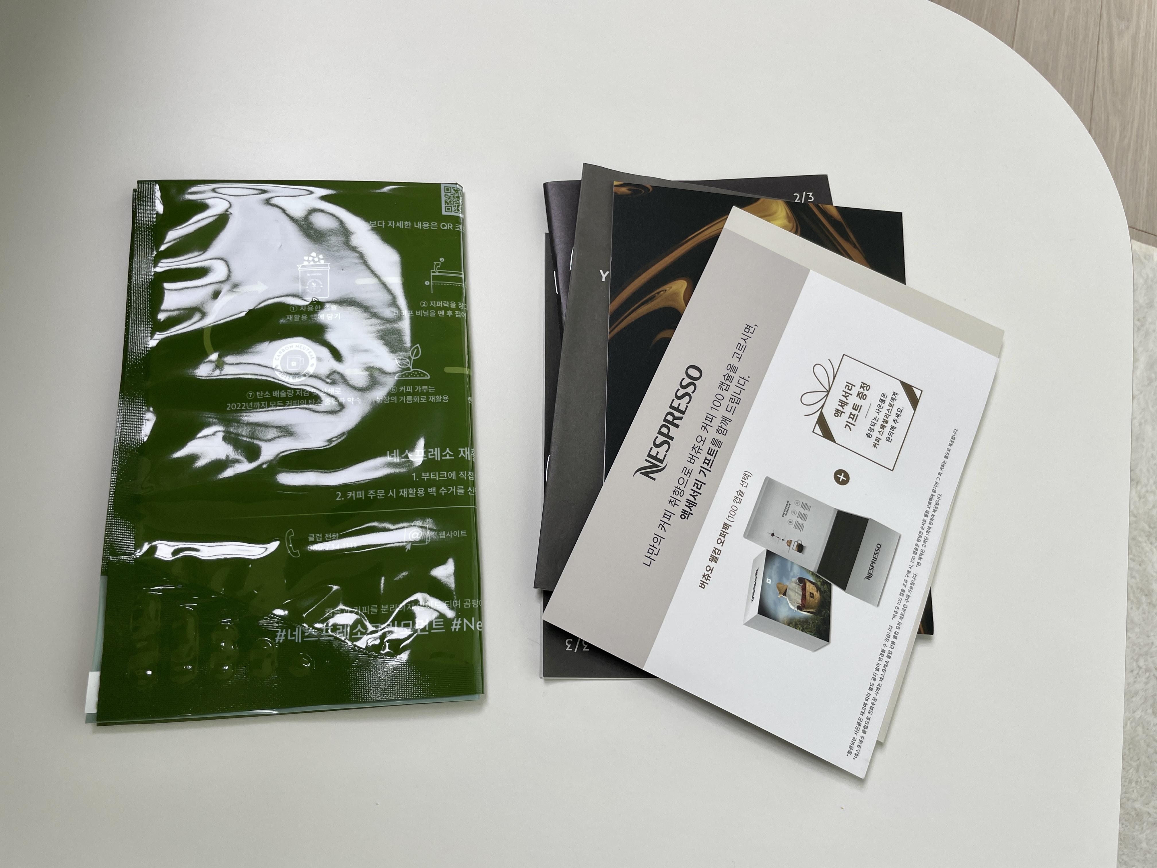 안에 들어있는 것들입니다. 캡슐회수용 봉투와 설명서 등등입니다.