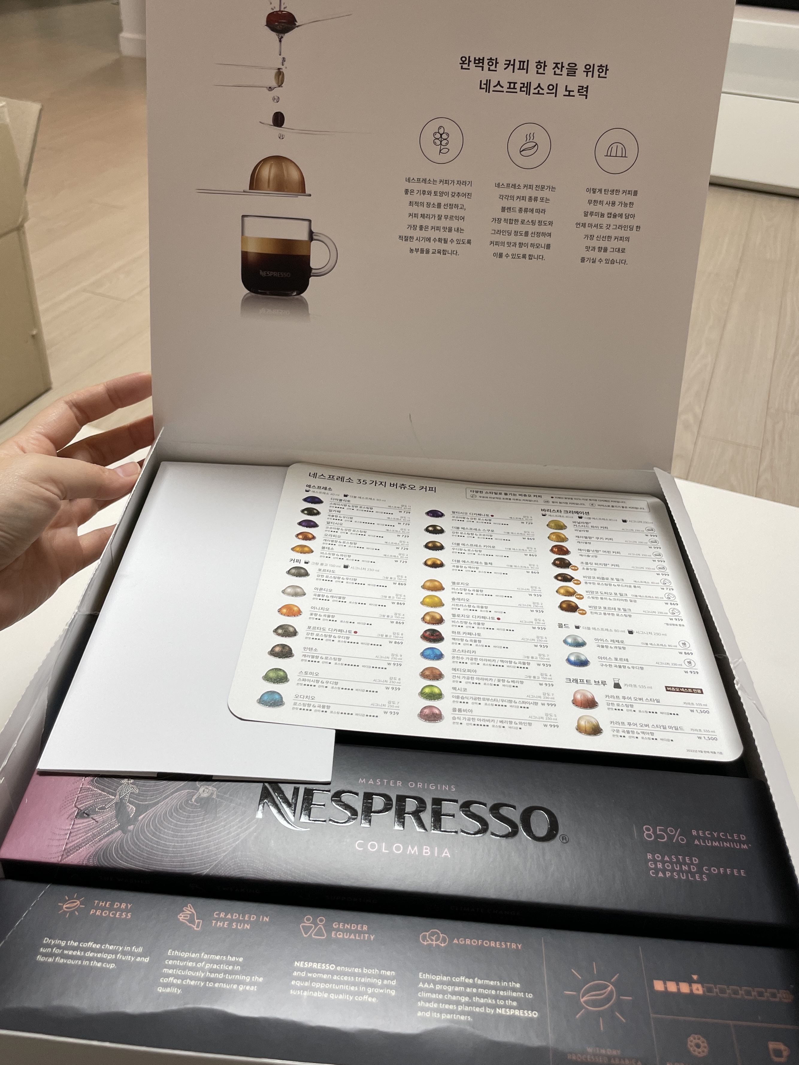 네스프레소 버츄오 캡슐도 100캡슐 구입하면 역시나 웰컴팩 선물을 받을 수 있다고 합니다.