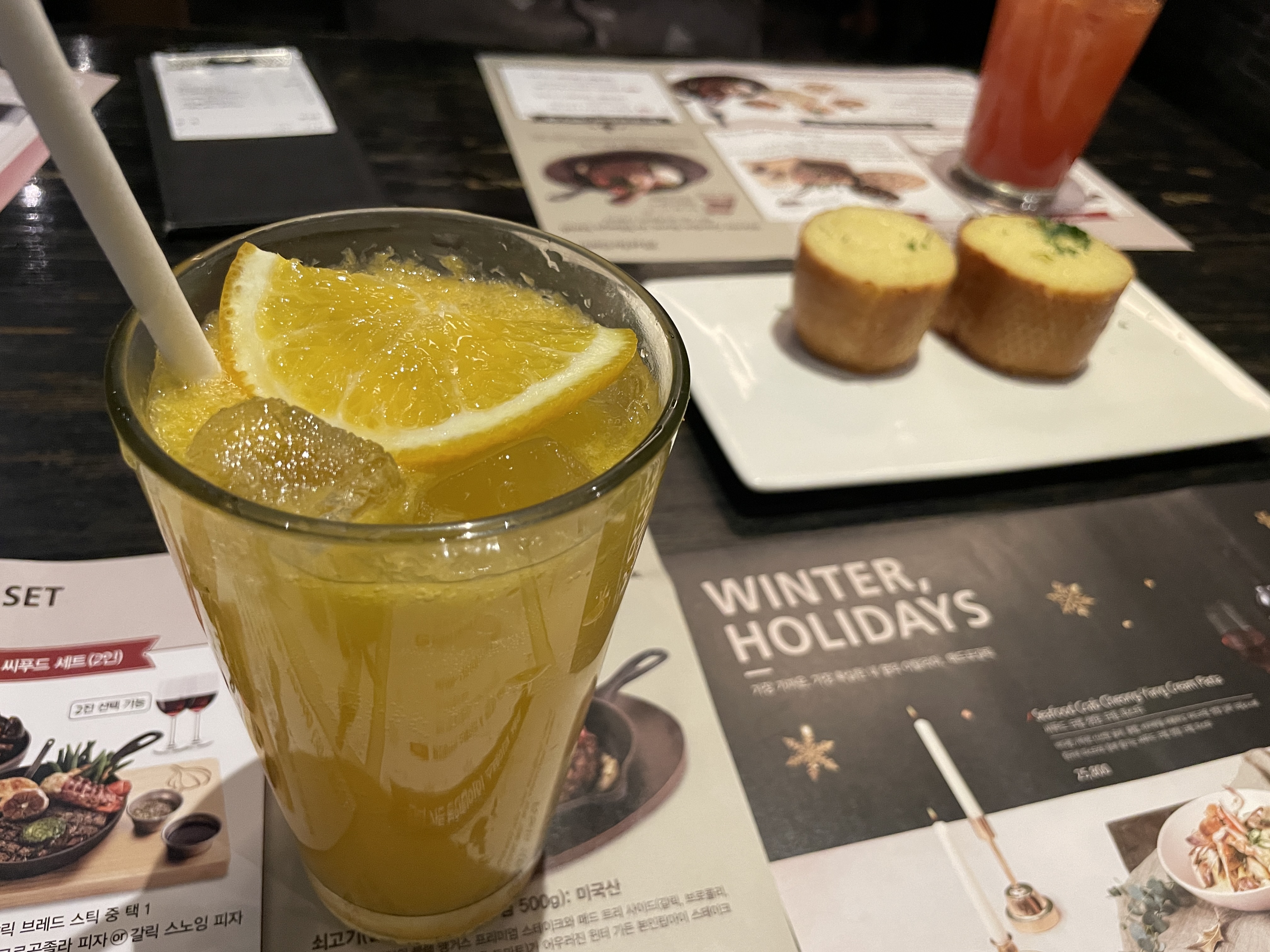 에이드로 두잔 시켰습니다. 자몽에이드와 오렌지에이드 ㅋ 오렌지맛이 진해서 정말 맛있었어요.
