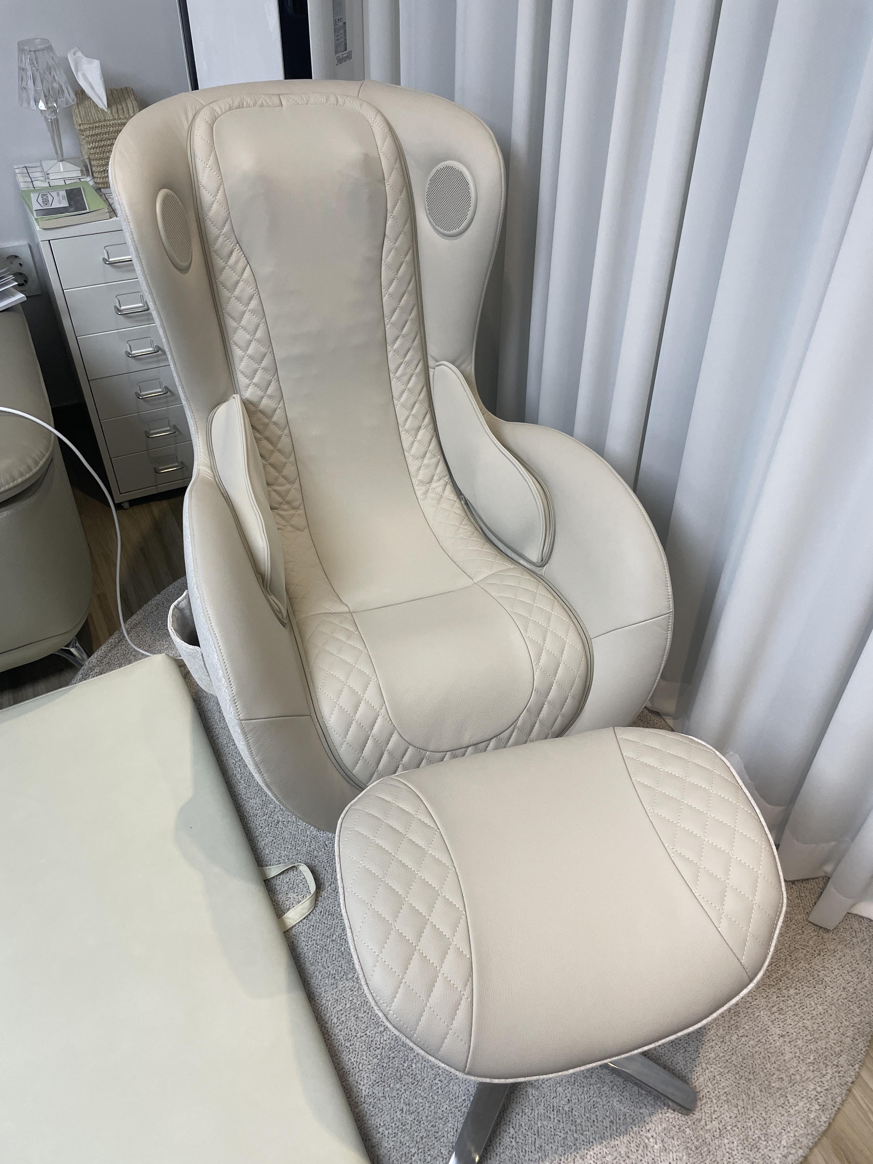 화이트 인테리어를 해치지 않는 엘더화이트 컬러의 누하스 클래식 안마기입니다. ㅎ