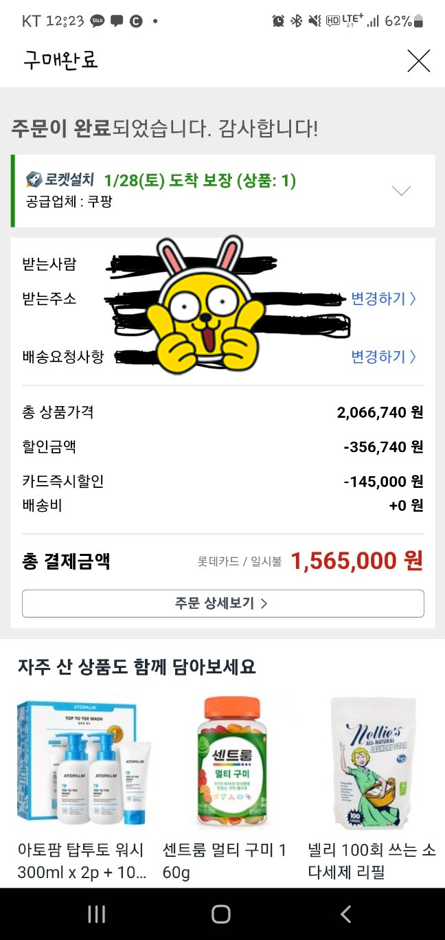 로켓와우 할인가에 카드 할인까지 빵빵하게 먹여서 1,565,000원에 구입완료입니다. ㅎ