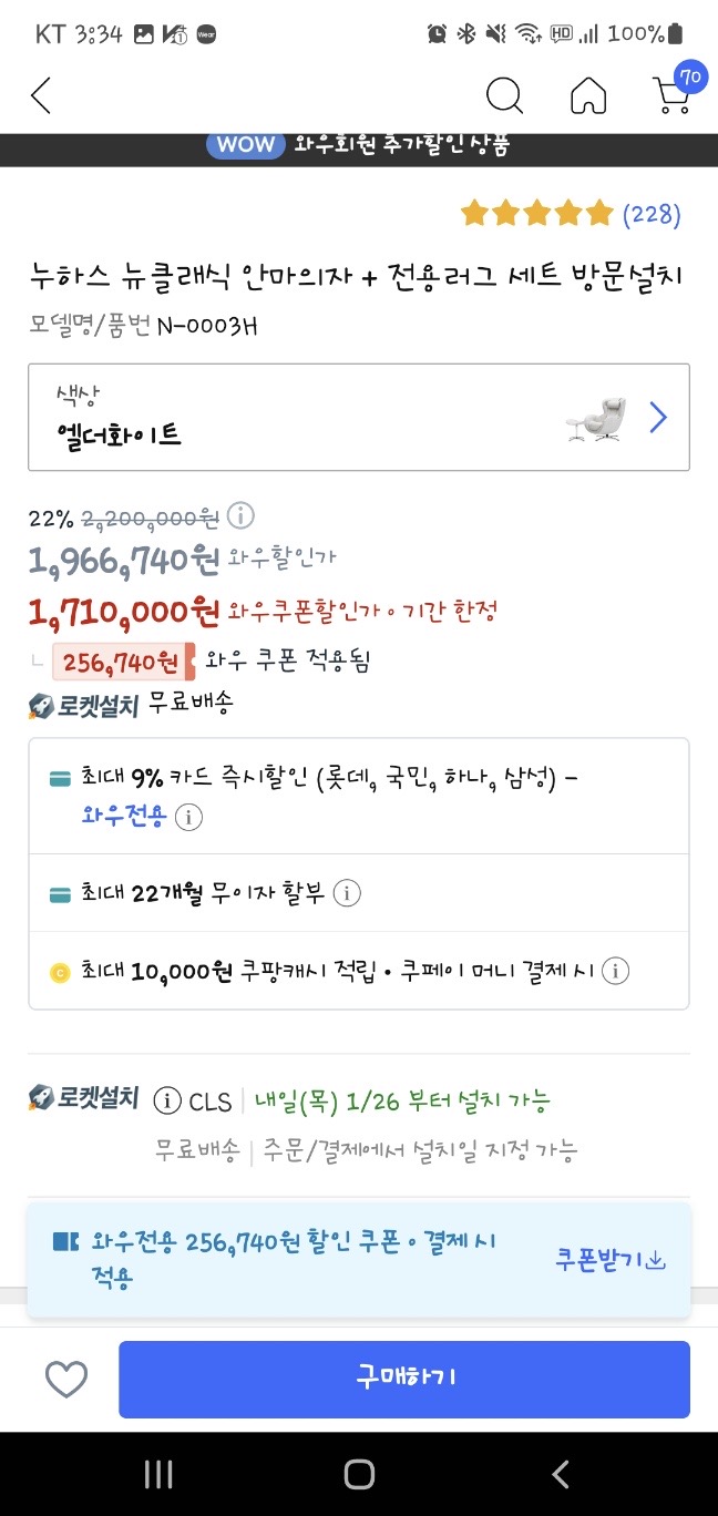 누하스 뉴클래식 안마의자 + 전용러그 세트 방문설치