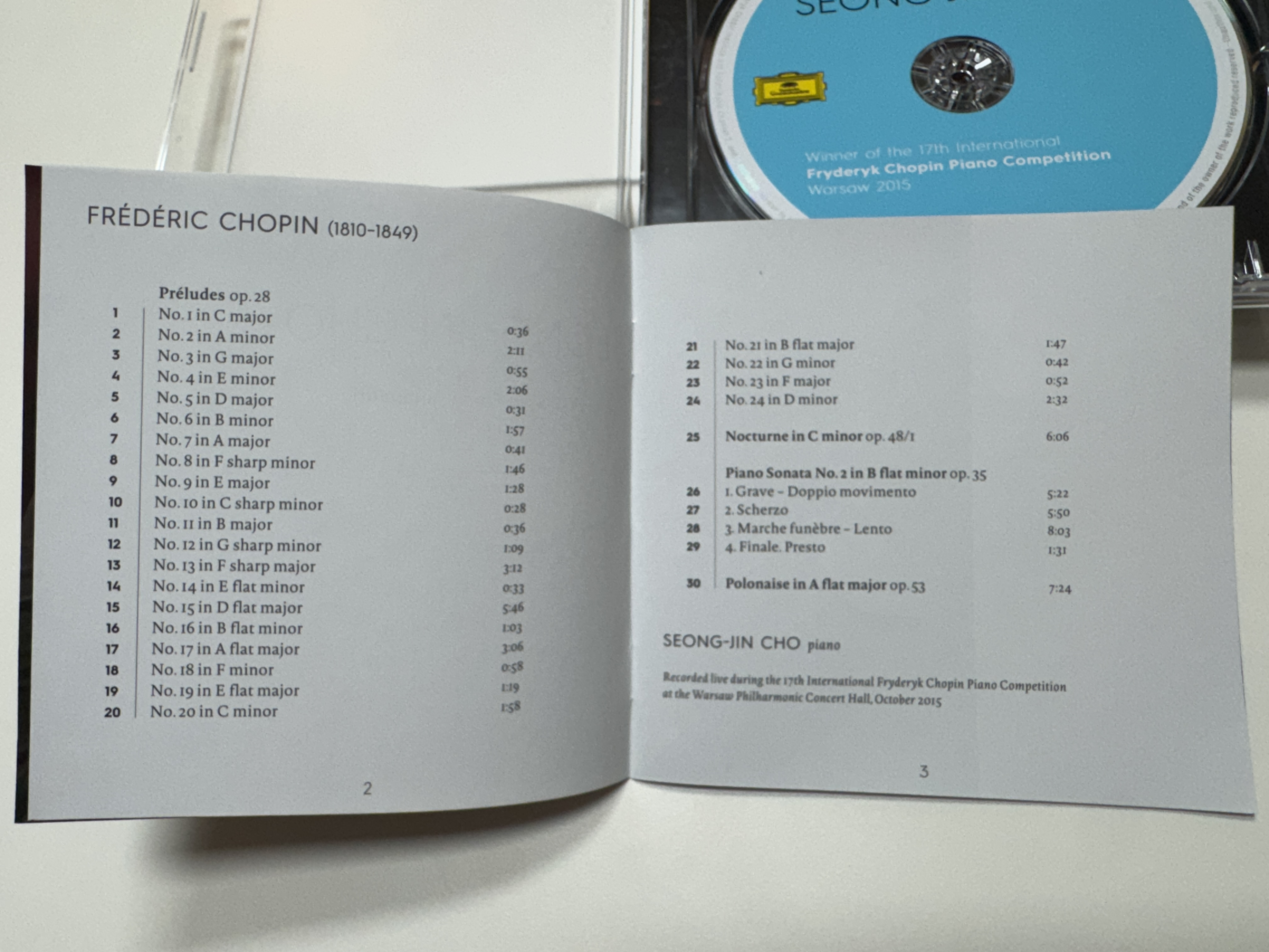 2015년 피아니스트 조성진이 쇼팽 콩쿠르에서 우승했었던 바로 그 음반이랍니다.